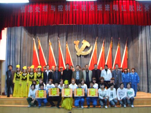 为进一步推动校园文化建设,增强老员工爱党、爱国、爱校的热情,增进班集体的凝聚力,展现2010级新生的精神风貌。11月11日晚,信息处理与控制工程系在西阶一教室举行了“唱响红歌,爱我中华”为主题的合唱比赛,系领导、辅导员、2010级新生班主任以及全体员工参加了此次活动。