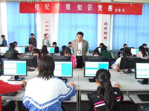 为了全面检查考核2011级新生对《员工手册》的学习和掌握情况,进一步加强对新生的校规校纪教育,促进新生基础文明习惯的养成,10月9日,信息处理与控制工程系在系实训基地举行了“纪律与我同行,文明与我同在”为主题的校纪校规知识考试,2011级全体新生参加了考试。