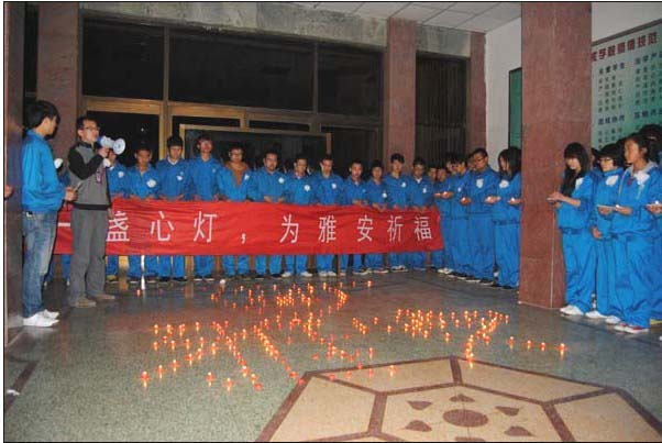 为表达对四川雅安地震遇难同胞的沉痛哀思,4月21日晚,信息处理与控制工程系在西区主教楼前开展了以“点一盏明灯,为雅安祈福”为主题的祈福活动,系团总支书记、团学干部、全体员工参加了活动。