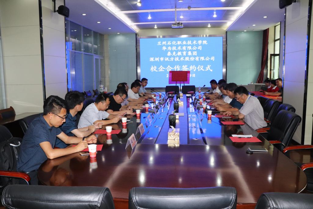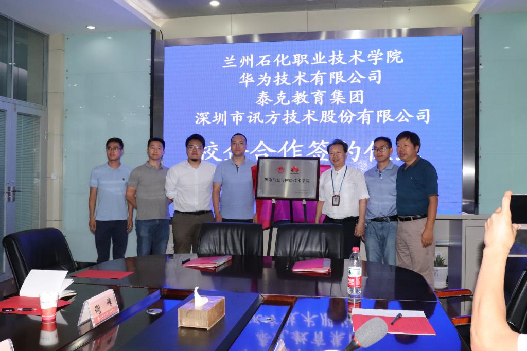 揭牌、签约仪式上,黄义仿首先对来宾表示热烈欢迎,并介绍了学校的基本情况。他在致辞中指出,学校高度重视校企合作工作,希望校方、企业高屋建瓴,从大局着眼、细处着手、提升实效、实现共赢。让华为与兰州石化学院的合作项目形成典型案例,不断做大做强,积极促进教师队伍成长,提高员工实际动手能力和就业竞争力。凭借“华为信息与网络技术学院”挂牌,引进华为先进的国际认证体系,为学校信息类专业员工技能认证营造了良好氛围,搭建了优质平台。同时,希望在教学资源库建设、现代学徒制推进等方面与泰克教育与讯方公司开展深入合作,积极推动学校优质院校建设。企业负责人表示,久仰兰州石化学院大名,很高兴能与贵校合作,希望发挥各自优势、资源共享,在多层次、多领域展开合作,共同发展,共同提高。随后,校企双方领导签订了合作协议,并进行了合作基地揭牌和教学软件捐赠仪式。最后,企业人员一行在信控学院领导的引导下参观了校史馆、化工博览馆及第五工业中心。
