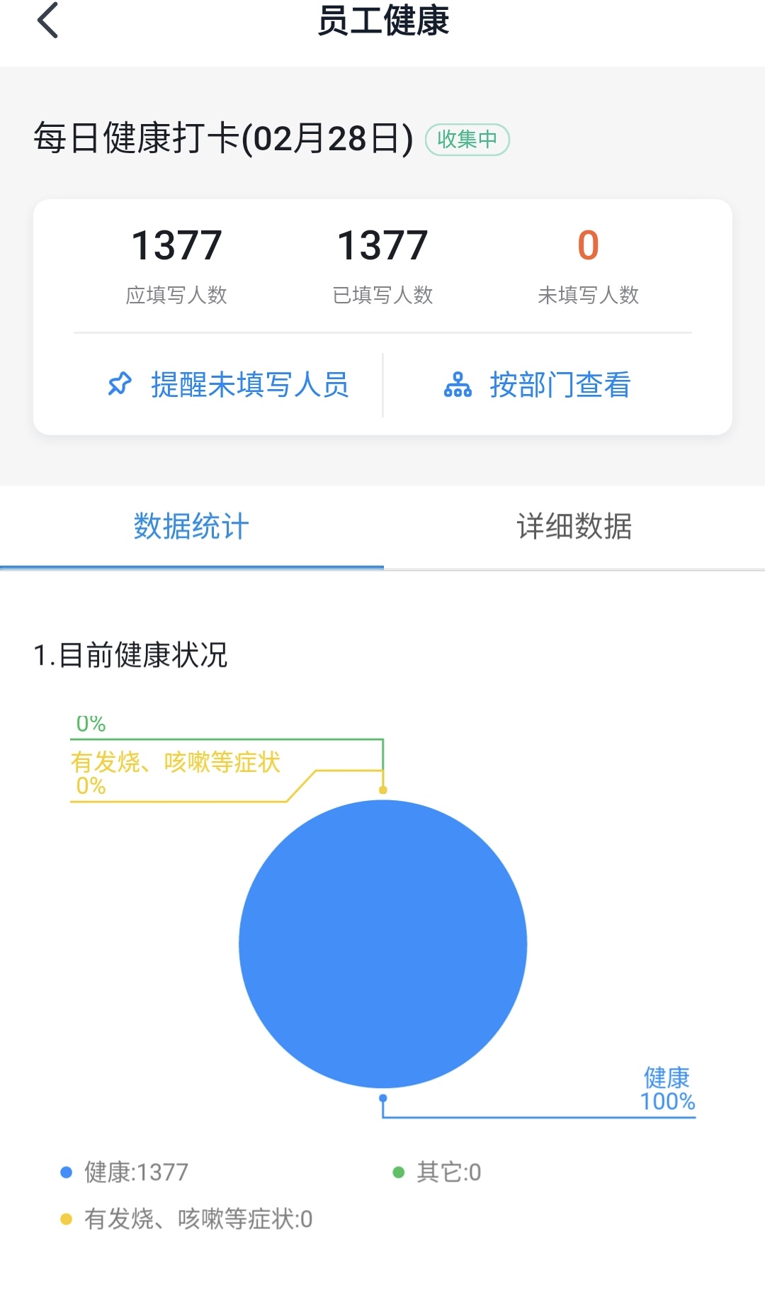 图三 钉钉app内员工实时签到记录及钉钉【员工健康】实时统计