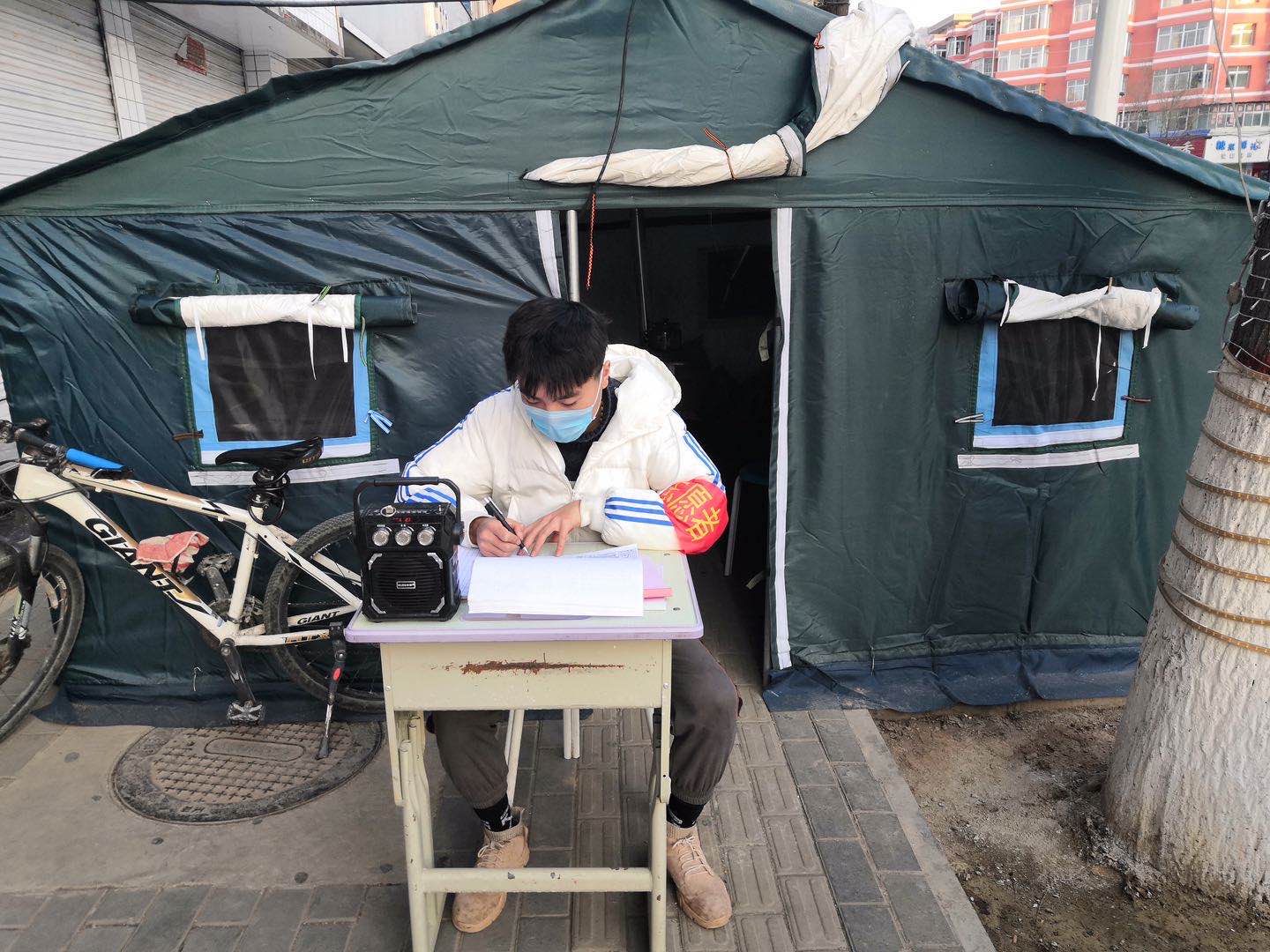 在工作中宋佳宁同学由感而发:“我们的一切都是国家赋予的,我们应尽己所能,参与疫情防控工作,有一份光发一份热。白衣天使在一线用生命与病毒战斗,我们也应该担起自己的使命和责任。”他熟练的整理社区人员出入记录,为居民办理出入证时一丝不苟,不落下任何一个程序。虽然是第一次参与这类志愿者活动,但其表现和专业人员并无差别。在社区门口站岗时,细心为每一位出入住户测量体温、检查是否有通行证或有效身份证件,并记录下相关信息。
