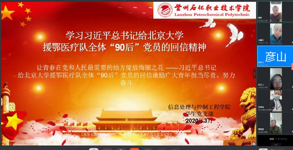 为贯彻习近平总书记关于疫情防控的重要指示精神,进一步落实疫情防控要求,确保疫情防控攻坚战全面胜利,信息处理与控制工程学院员工党支部举办了“守初心,担使命”线上主题党日活动。