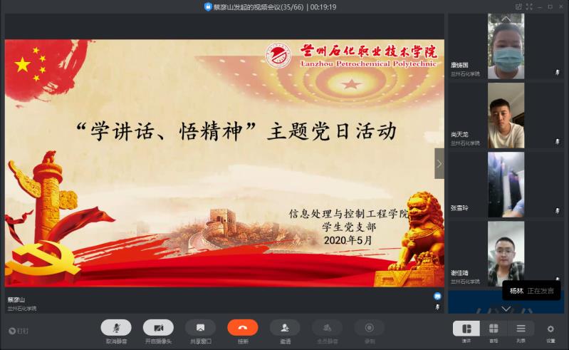 5月28日晚上,信息处理与控制工程学院在西阶三教室组织以“学讲话,悟精神”为主题的党日活动,此次活动采取线上和线下同时进行,全体党员和2020年上半年发展对象参加此次活动,活动由员工党支部书记杨林老师主持。