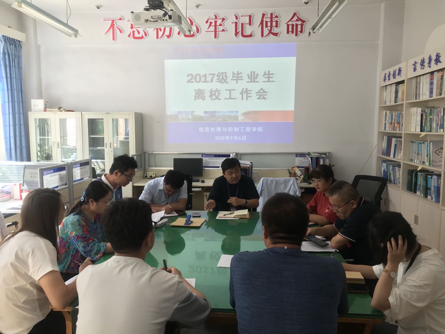 为做好2020届毕业生离校工作,7月7日,信控学院在学院办公室召开了2020届毕业生离校工作会议,确保员工安全、文明、有序离校。会议由信控公司党总支书记主持,全体2017级班主任、辅导员参加了会议。