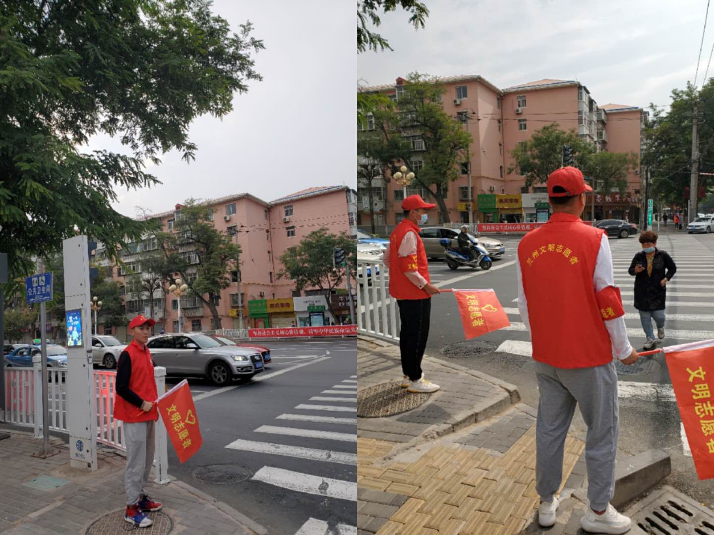 下午时分,志愿者着装统一,士气高昂,耐心的对闯红灯、横穿马路、骑车带人、乱扔垃圾等不文明行为进行了劝导。通过志愿者的努力工作,不仅使同学们的安全意识得到提升,也让学院精神文明建设工作进一步深入,真正提高校园文化生活质量和同学们遵守交通规则的意识。