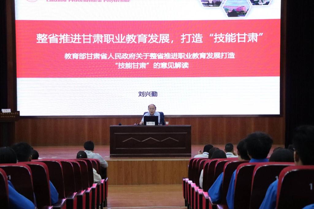 党课中,刘兴勤通过深刻分析我国职业教育现状,全面展示讲解了一个方案《国家职业教育改革方案》、一个意见《关于整省推进职业教育发展,打造‘技能甘肃’的意见》的出台背景、目标要求、主要任务和解决举措等,解读了“意见”中甘肃高地的特色、运行机制,从聚焦两条主线、构建三个体系、打造四个高地、落实九项任务等。报告立意站位高、内容充实、信息量大,增强了我们投身职业教育的信心,明确了奋斗的方向。