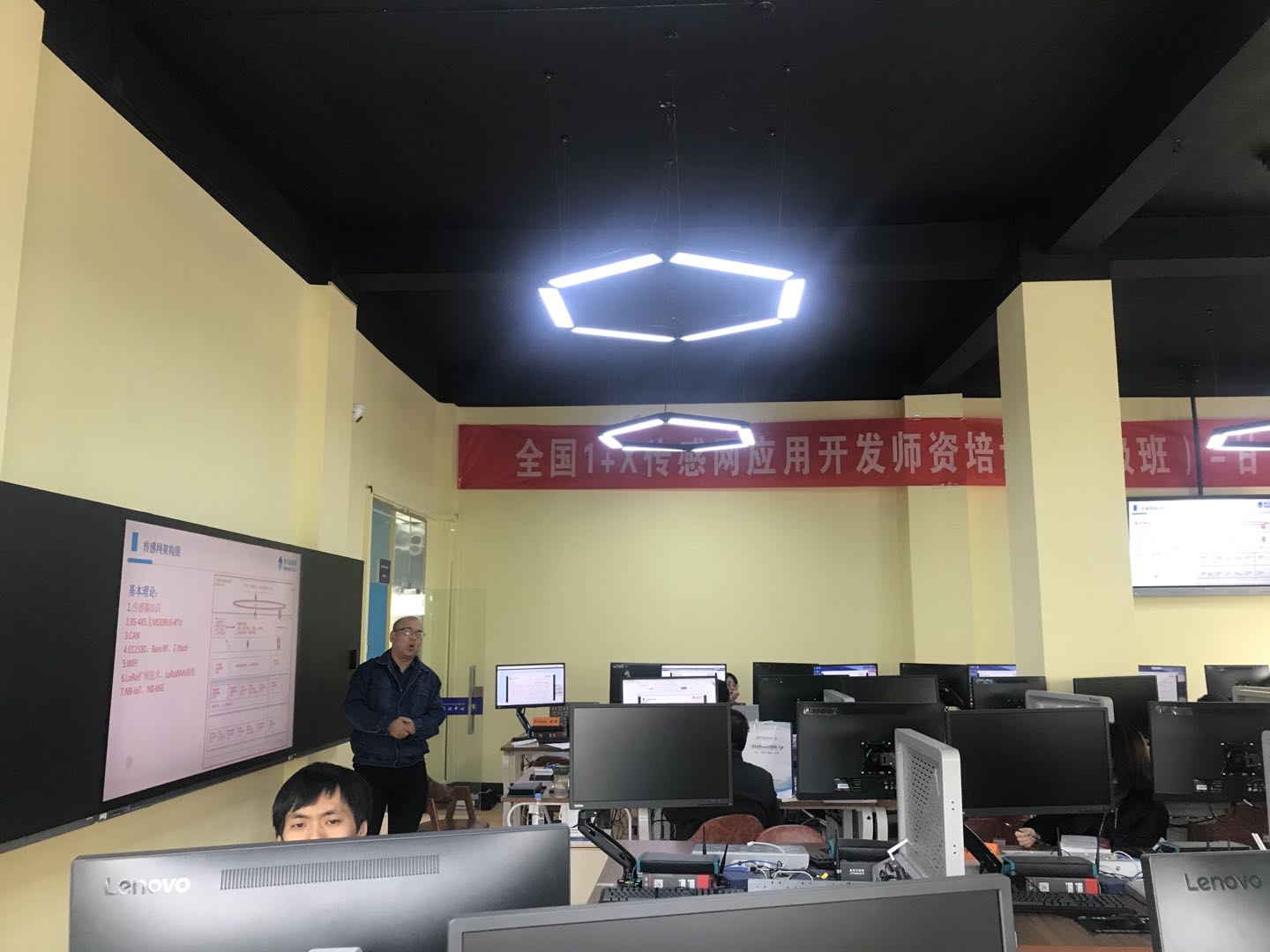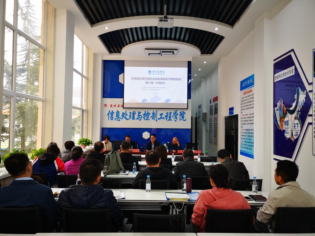 10月12日,由教育部授权北京新大陆时代教育科技有限公司主办,公司承办的全国1+X传感网应用开发团队培训(中级班)第27期甘肃兰州站培训班,在兰州石化职业技术学院(西区)信息处理与控制工程学院信息技术创新实践教学中心开班。北京新大陆时代教育科技有限公司甘青销售经理马玉宝、王亚飞,讲师团队、信控学院领导、物联网专业教师,以及来自青海高等职业技术学院、承德应用技术职业学院、四川幼儿师范高等专科学校、新疆奇台中等职业技术学校和兰州职业技术学院等省内兄弟院校的19名老师参加了开班仪式。