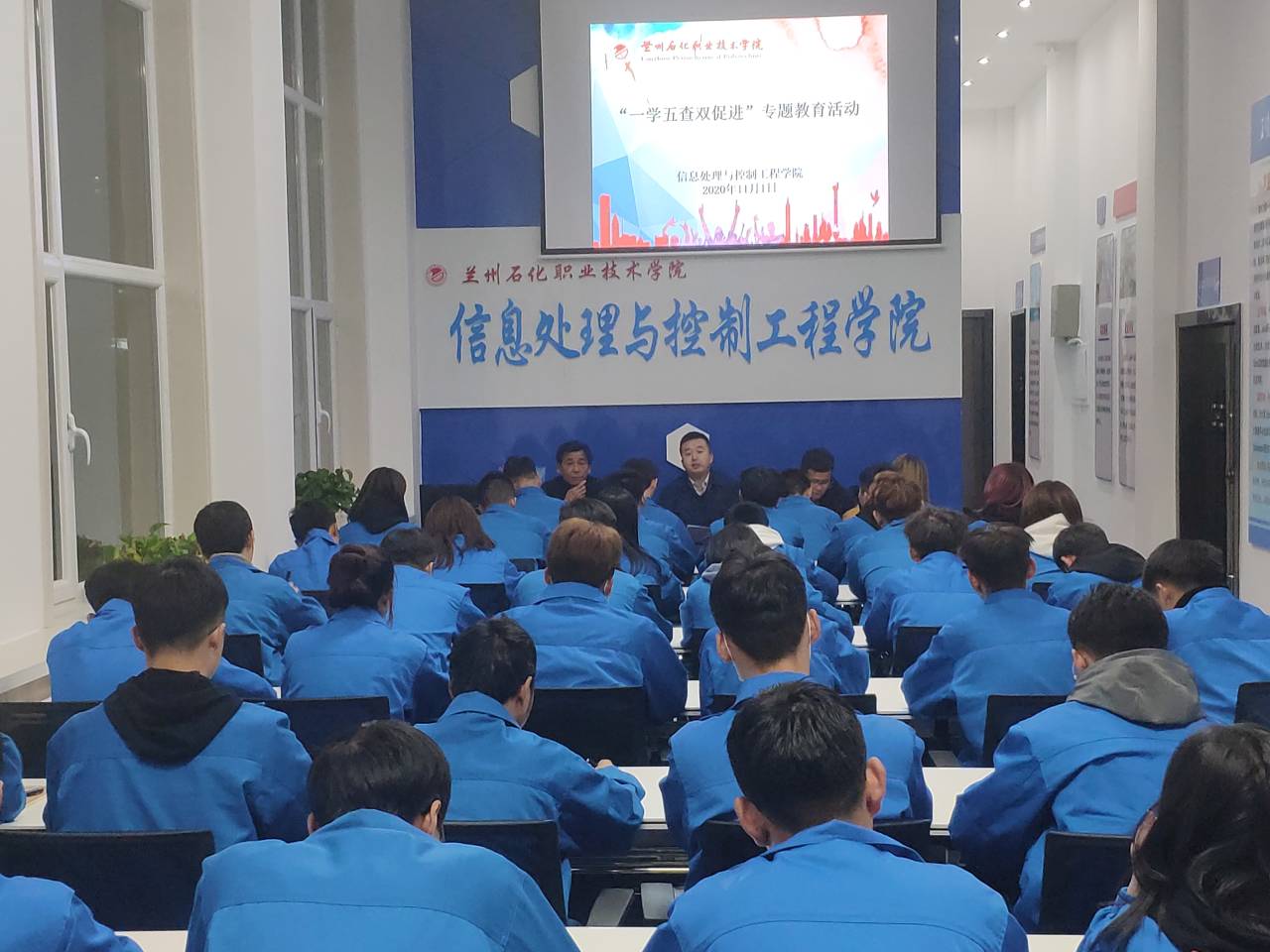 为深入学习习近平总书记关于教育的重要论述,全面贯彻全国教育大会会议精神和《国家职业教育改革实施方案》,落实立德树人根本任务。11月1日晚,信息处理与控制工程学院在西主教二楼举办“一学五查双促进”专题教育活动。信息处理与控制工程学院副书记张文川、辅导员周波老师、全体员工干部及19级、20级各班班长、团支书参加了本次活动。