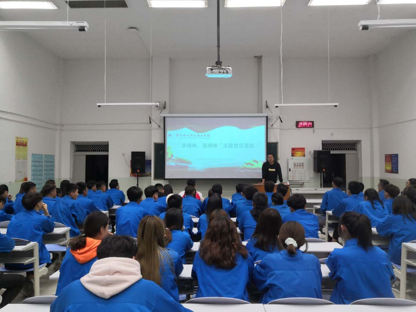 11月6日,信息处理与控制工程学院组织“学讲话,悟精神”主题党日活动,全体党员及入党积极分子共同学习了党的十九届五中全会公报,畅谈学习体会。